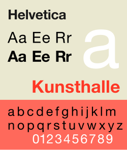 Helvetica is a sans serif meaning it has no extra adornment at the ends of letters. Sans is a French word meaning "without". Though Miedinger created many versions of Helvetica with varying weights he also created a font called Miedinger in his later years. Along with Miedinger, he also created Swiss 921, Monospace 821, and Swiss 721. Helvetica in fact is not the only font he created, but it is his lasting trademark and only font really associated with his name if any text does this.